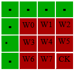 CK = (((W1 XOR W4 XOR W6 XOR W7) AND 0x01) << 1) OR ((W0 XOR W2 XOR W3 XOR W5) AND 0x01)